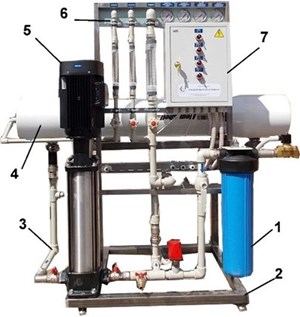 Обратноосмотическая установка состоит из следующих компонентов: